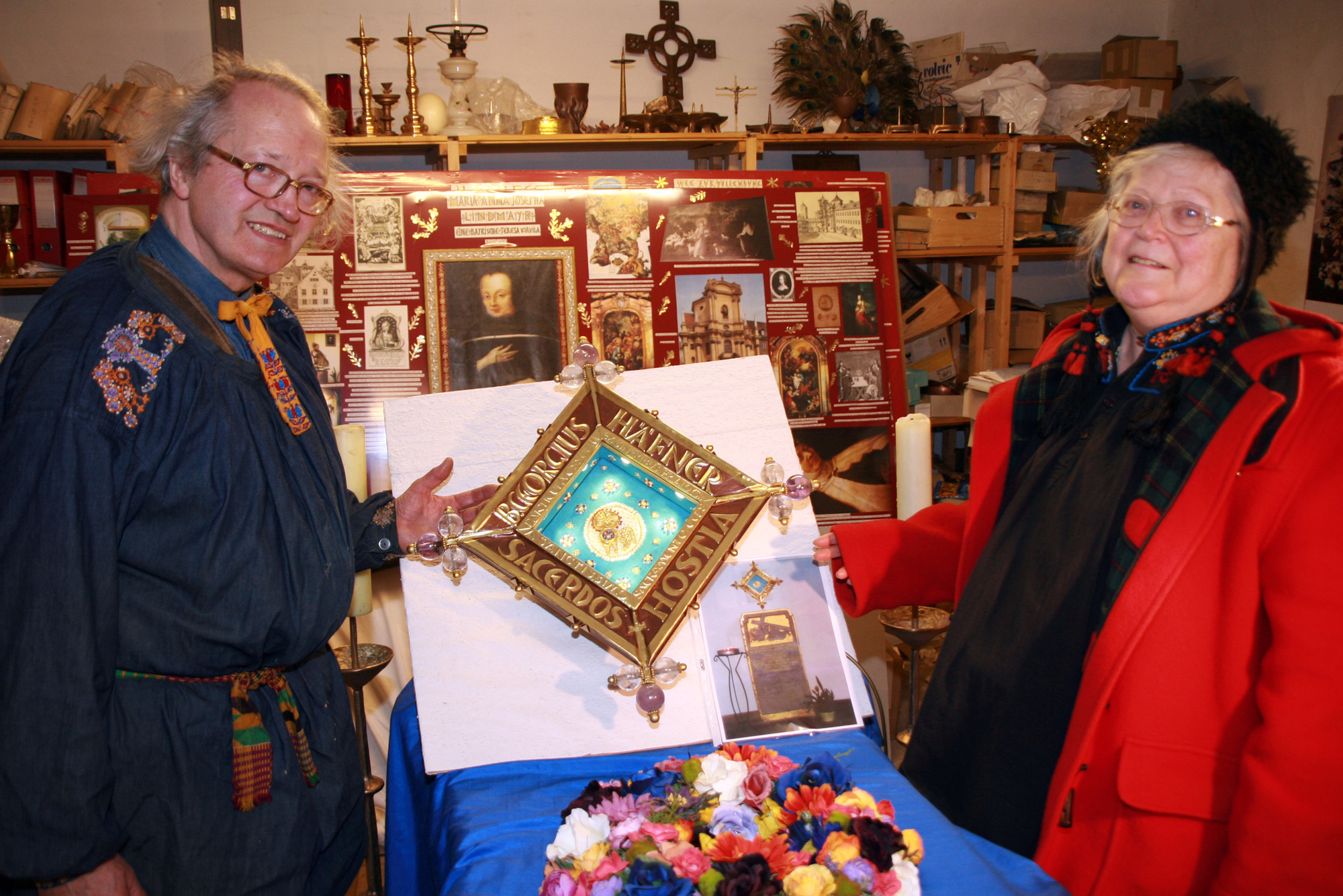 Seit über 30 Jahren beschäftigen sich die Kunsthistorikerin Fides Amberg-Hartmann und ihr Mann, Goldschmied Michael Amberg, intensiv mit dem Wirken und Leiden von Georg Häfner. „Er hat seine Verbundenheit mit Gott in allen Lebenslagen bezeugt, auch während der schlimmsten Tage im Konzentrationslager“, erklärt Amberg seine Begeisterung für die Person des Märtyrerpriesters. Der Vater von Michael Amberg, Joseph Amberg d.J., wurde wie Häfner im Jahr 1900 geboren und kannte ihn von der gemeinsamen Militärzeit am Ende des Ersten Weltkriegs. Das Interesse von Michael Amberg für die Lebensgeschichte Häfners wurde aber erst richtig geweckt, als ihm die Würzburger Priorin des Dritten Ordens vom Berge Karmel, Sophie Rausch, einige Zeitungsberichte über Häfner vermachte. Wie Häfner selbst waren Amberg und seine Frau Fides 1976 in den Dritten Orden der Karmeliten, auch Säkularorden genannt, eingetreten. Da das gesammelte Material der Priorin kaum Bilder von Häfner enthielt, begann Amberg mit umfangreichen Archivrecherchen. Verwandte Häfners übergaben ihm die Briefe, die der Priester aus dem Konzentrationslager geschickt hatte. Häfners Cousine Martha Kamm, seine beiden Haushälterinnen und viele Weggefährten lernten die Ambergs persönlich kennen.